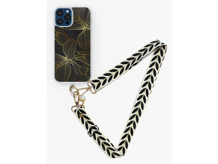 Le bandeau Leaf allie élégance et simplicité avec son motif de feuilles noires et blanches. Conçu pour un style moderne et épuré, il apporte une touche naturelle et sophistiquée à votre téléphone. Grâce à sa longueur ajustable, il s’adapte à vos préférences, que vous le portiez en bandoulière ou autour du cou.