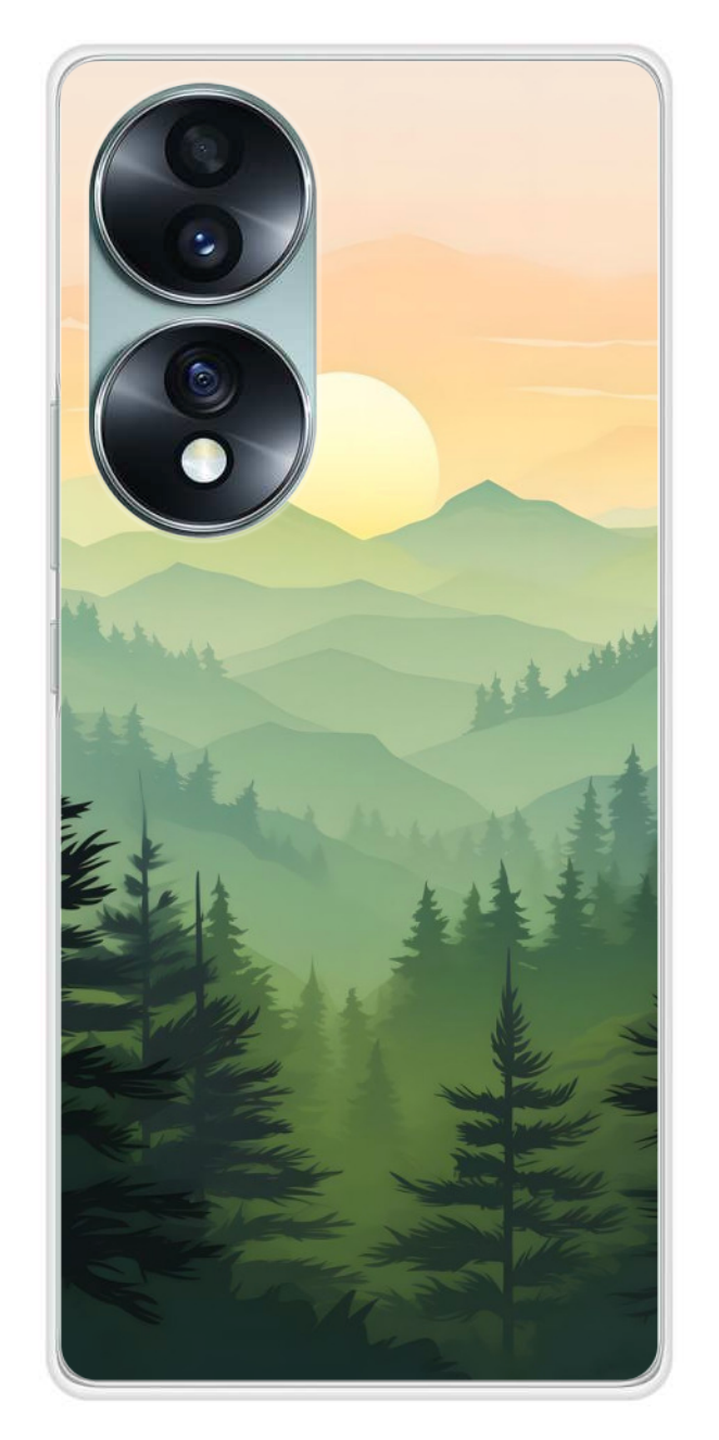 Coque Design "Dawn's Radiance" – Forêt de Pins & Montagnes au Lever du Soleil