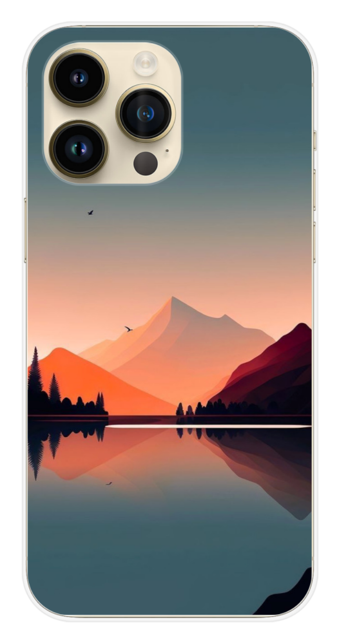 Élève ton style avec la coque design "Sunset Peaks", une invitation à l’évasion dans un paysage de montagnes embrasées par la lumière du soir. La scène mêle sommets paisibles, pins noirs et reflets parfaits sur un lac immobile pour une atmosphère zen et inspirante.
